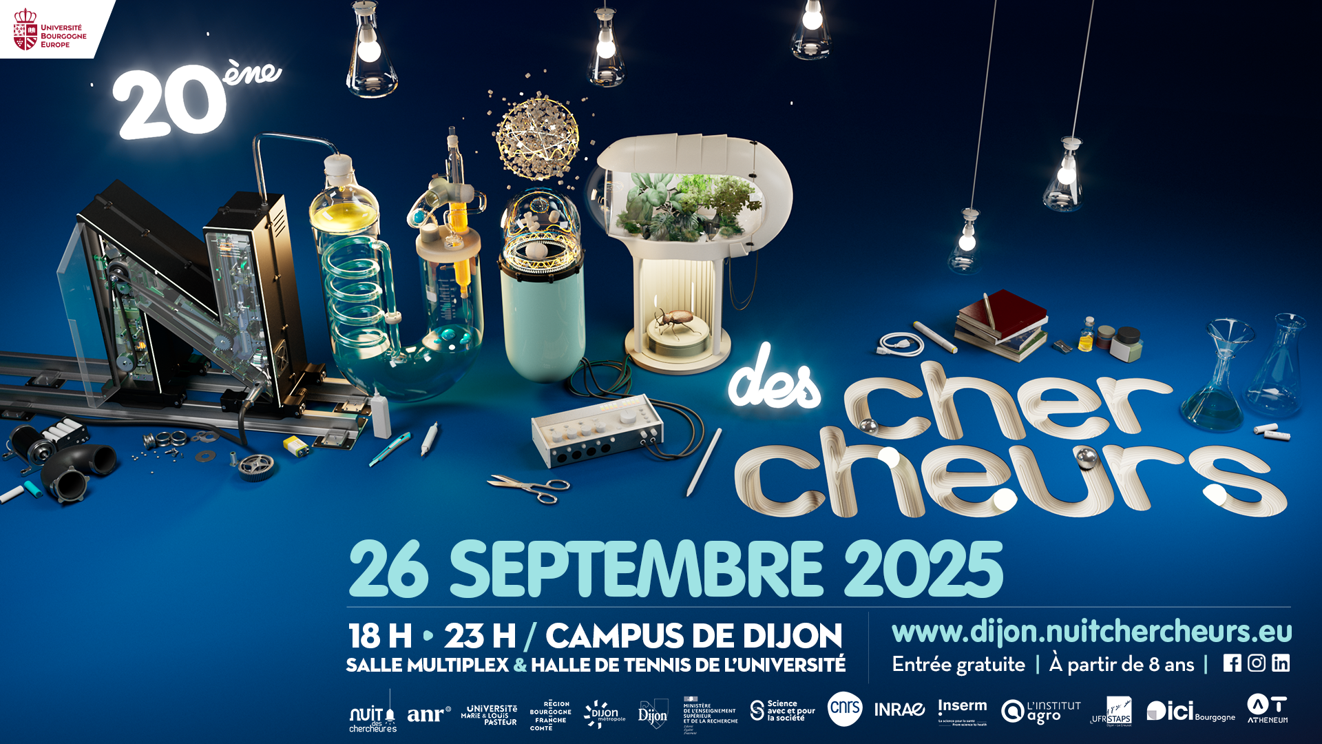 La 20ème Nuit des chercheurs aura lieu le vendredi 26 septembre de 18h à 23h à la halle de tennis et à la salle Multiplex de l’Université Bourgogne Europe.