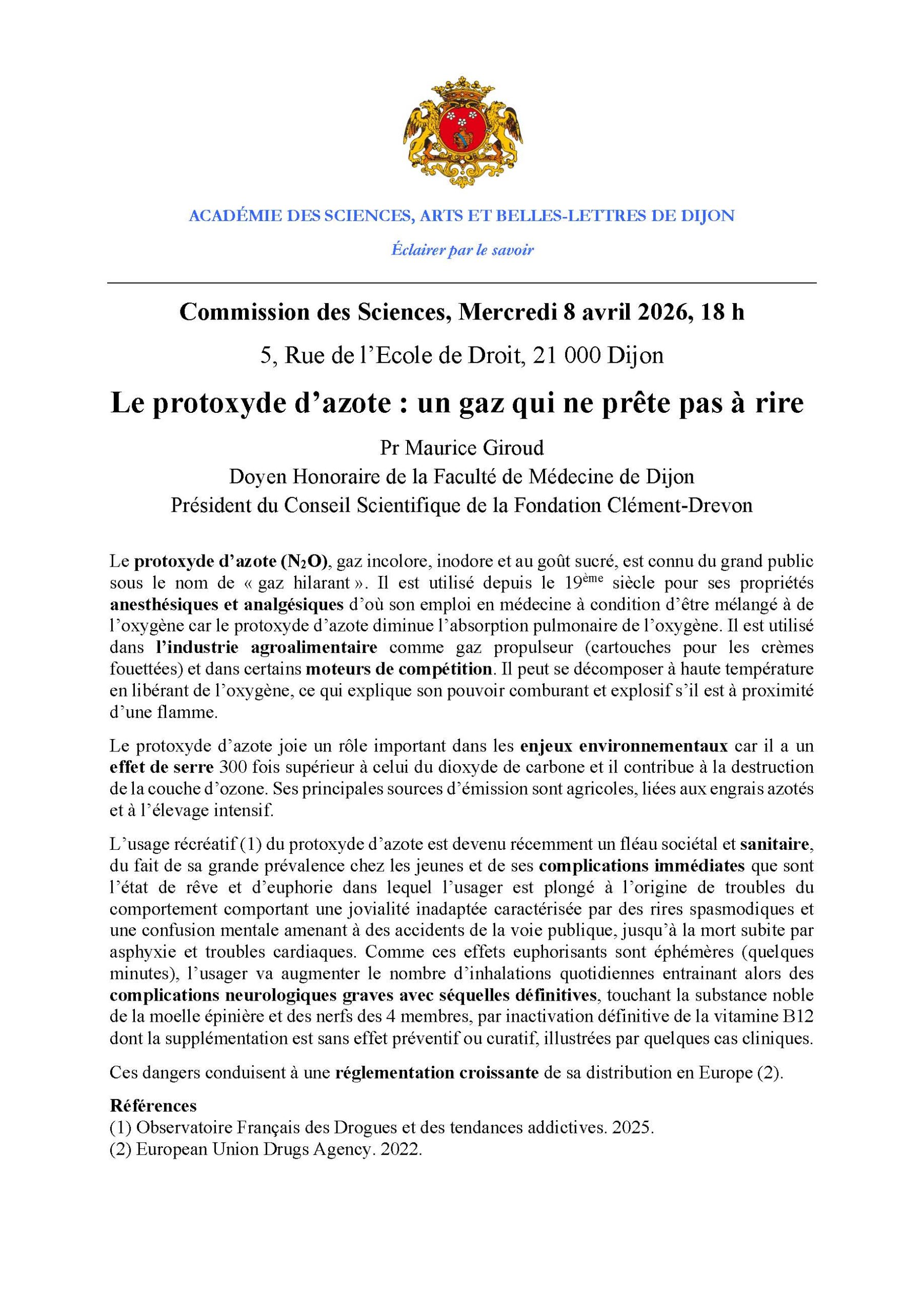 Maurice Giroud. Le protoxyde d’azote: un gaz qui ne prête pas à rire