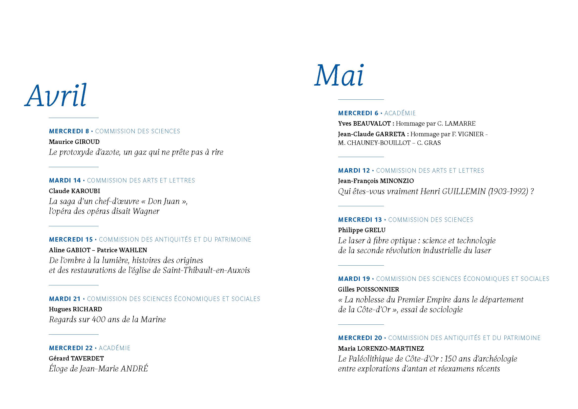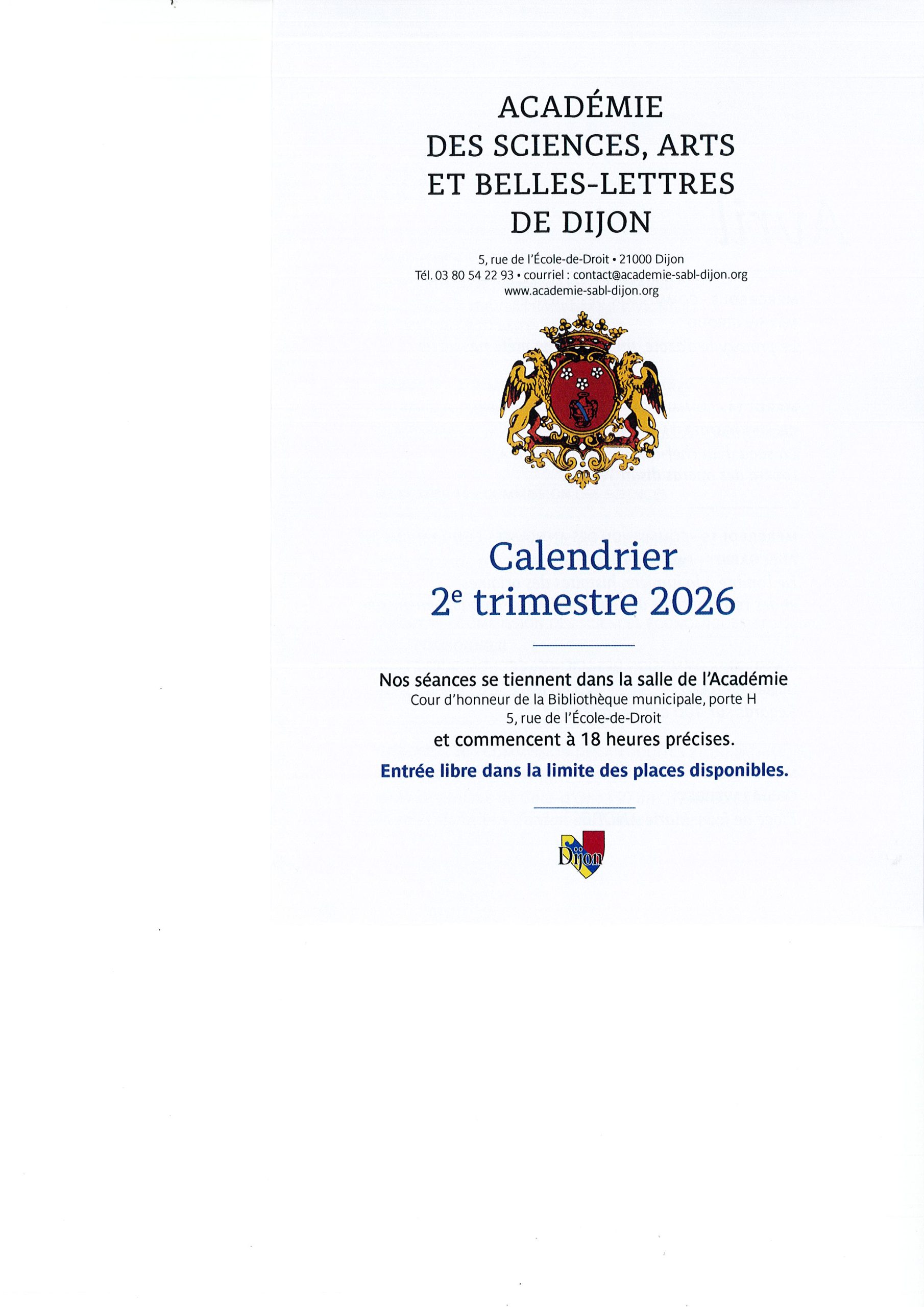 Calendrier des Sciences, Arts et Belles-Lettres de Dijon