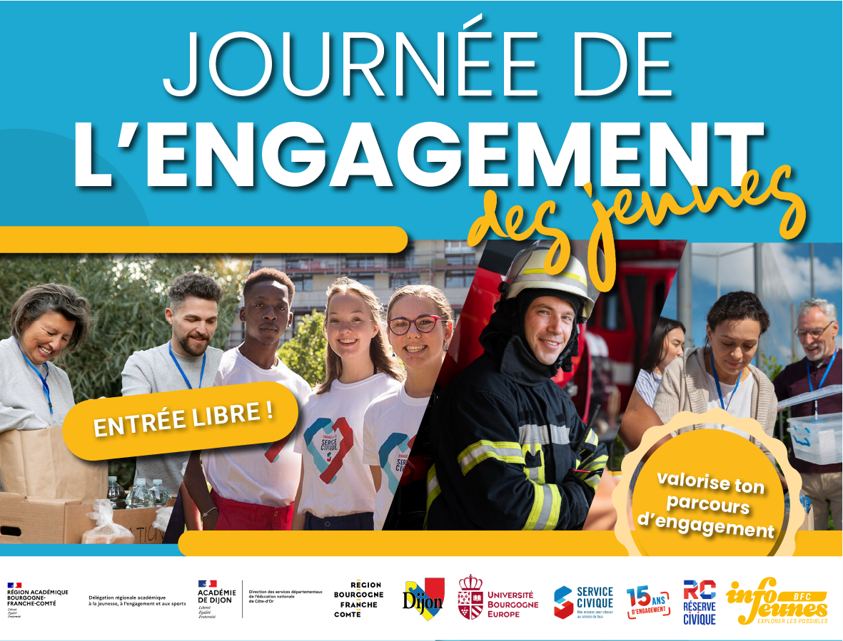 Mercredi 10 décembre de 10h à 17h, à la Salle Multiplex se tiendra la Journée de l’Engagement des Jeunes, un évènement gratuit pour toutes et tous, porté et organisé par la Drajes BFC, la SDJES et Infos Jeunes BFC sur le campus de l’Université Bourgogne Europe.