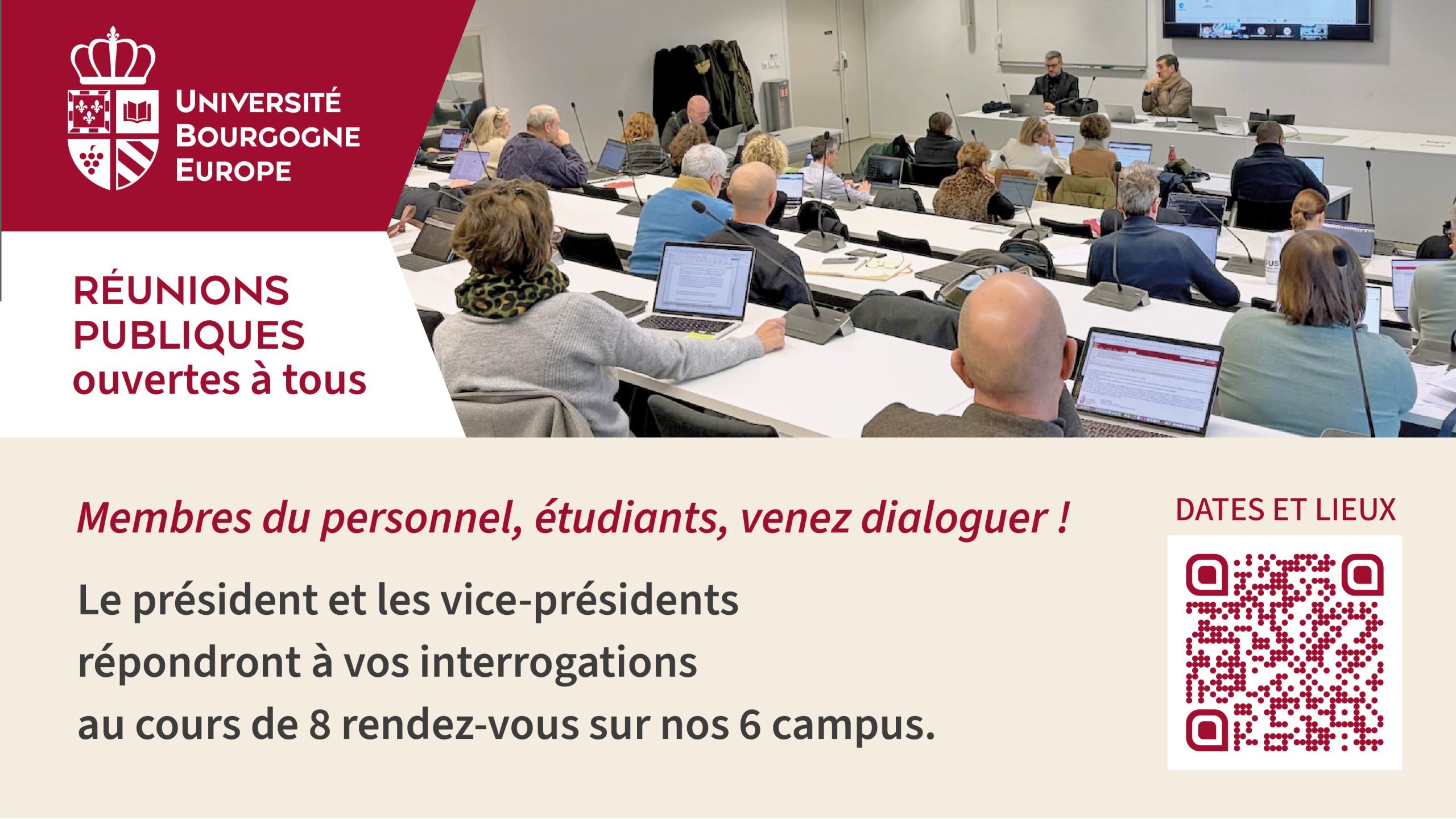 Réunions ouvertes à toutes et à tous les Membres du personnel et étudiants.